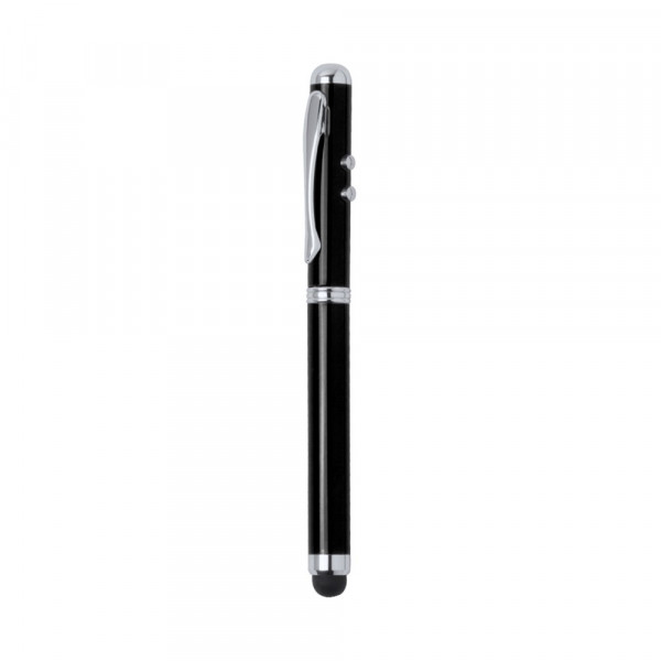 Kugelschreiber mit Kappe und integriertem Laserpointer. Schaft in eleganter glänzender Metallic-Ausführung mit Kontrastdetails in glänzendem Silber sowie integriertem Stylus. Aktivierung des Laserpointers durch seitliche Tasten. Zudem mit praktischem Befestigungsclip und speziell für den Laserdruck entwickeltem Gehäuse. Knopfzellen inklusive. Präsentiert in einem eleganten Metall-Etui mit weichem gestanztem Schaumstoff und Ersatzbatterien.