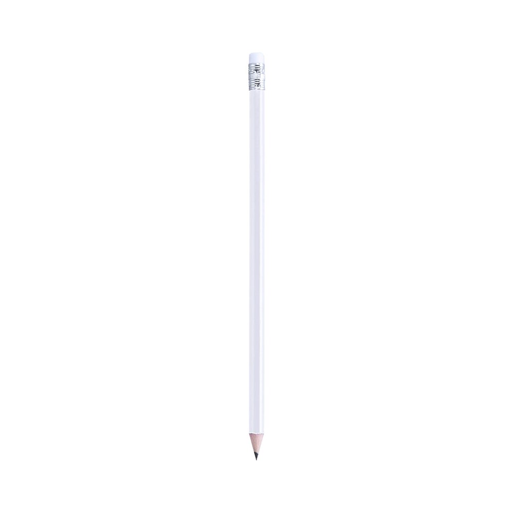 Holzstift mit glänzender Oberfläche. Mit rundem Griff und weißem Radiergummi. Erhältlich in einer Vielzahl von Farben. Schwarze Mine und scharfe Spitze.