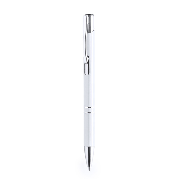 Origineller Kugelschreiber mit Druckknopfmechanismus in elegantem zweifarbigen Design. Gestanzter Aluminiumschaft mit glatter Oberfläche in verschiedenen Farben. Origineller Clip, Ringe und Spitze in Silber. Mit Jumbo-Mine und blauer Tinte.