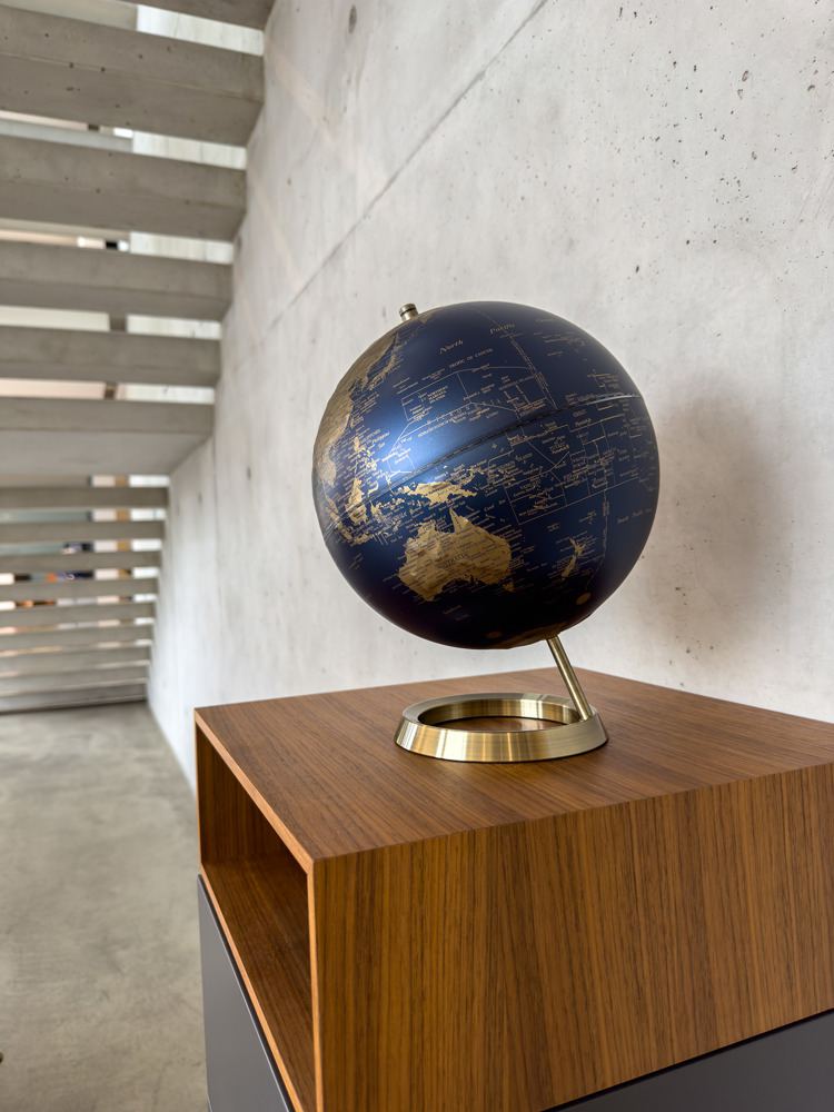 Globus mit 25 cm Durchmesser, verchromter Metallfuß in gebürsteter Optik, 23,5 Grad Neigung an...
