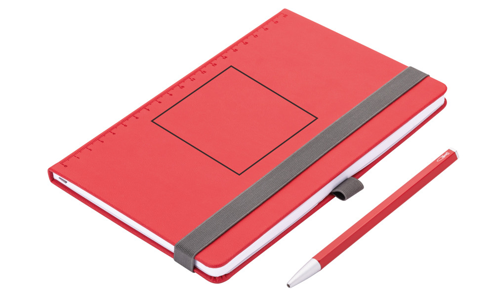 Notizblock DIN A5 inkl. Kugelschreiber, Elastikband-Verschluss, Stiftschlaufe, Lesezeichen,...