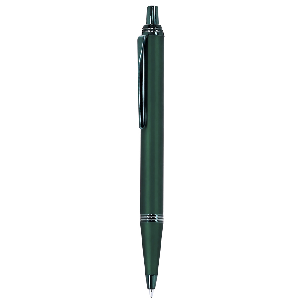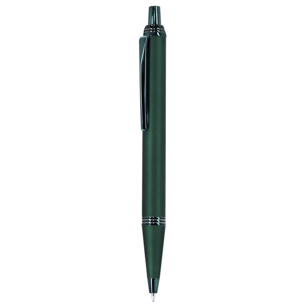 Kugelschreiber mit Aluminiumgehäuse, gummierter Oberfläche und Chromdetails. Druckmechanismus, Jumbo-Mine und blaue Tinte.