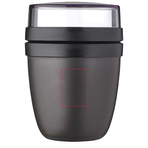 Der Ellipse Mini Lunchpot ist ideal für Snacks wie Joghurt mit Müsli oder Suppe mit Croutons. Zwei praktische Fächer in einem robusten Behälter halten die Zutaten sauber getrennt. Dank kompakter Größe passt er bequem in jede Schultasche – für eine schnelle, unkomplizierte Mahlzeit unterwegs. Der obere transparente Behälter fasst 120 ml – ideal für etwa 50 g Müsli oder Obst –, der untere Behälter hat ein Fassungsvermögen von 300 ml. Auslaufsicher und spülmaschinengeeignet. BPA frei.