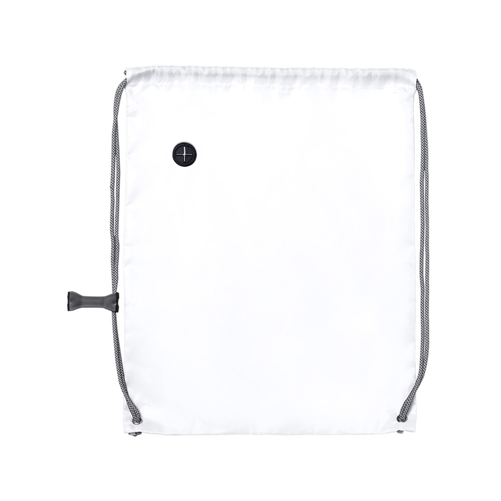 Rucksack mit Kordelzug aus weichem 190T Polyester in lebendigen Farben. Mit Kopfhörerausgang, extra dicken Zugbändern in Grau mit Stopper sowie Ecken mit Metallösen und Verstärkung.