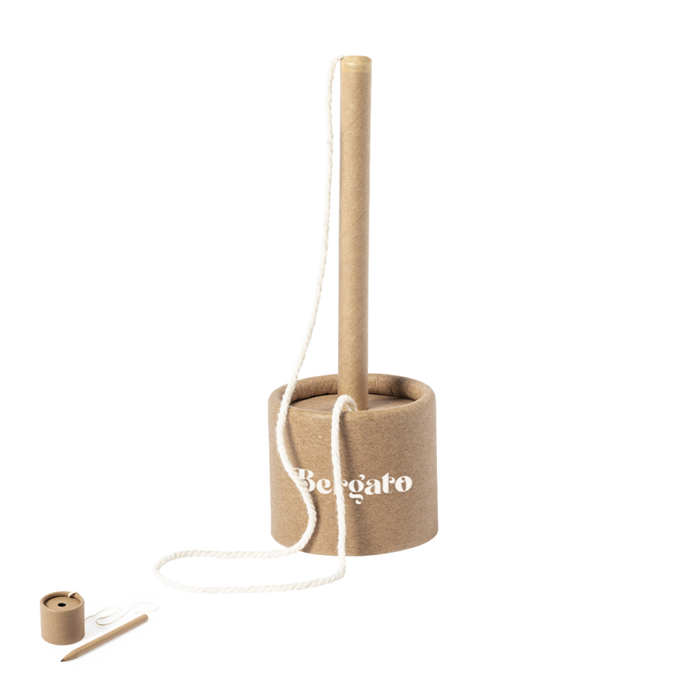 Linie "Natur" Kugelschreiber mit blauer Tinte und Halter aus recyceltem Karton hergestellt. Inklusive Schnur und Sockel mit 3M-Kleber, extra starke Fixierung und rückstandsfrei beim Ablösen.