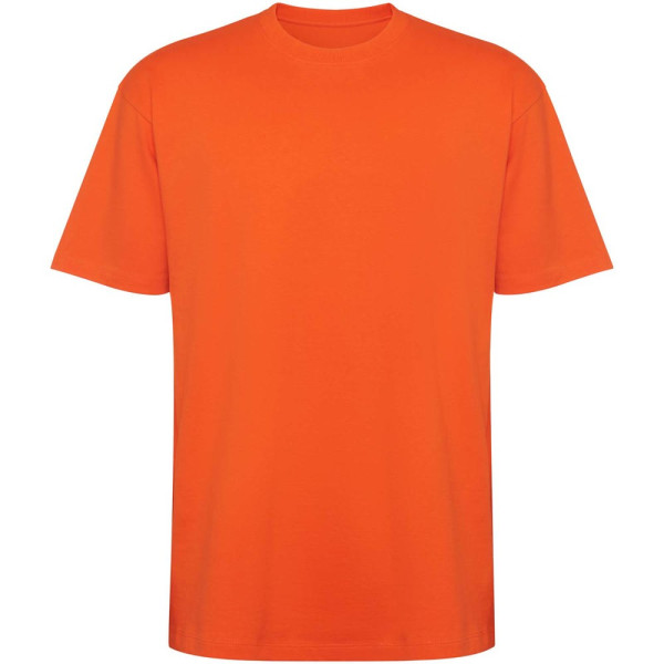 Oversize T-Shirt. Rundhalsausschnitt aus 2x1 Rippstrick mit abgestimmten Nahtabdeckungen. Seitennähte. Breite Doppelnähte an Ärmeln und Saum. Abnehmbares Etikett.