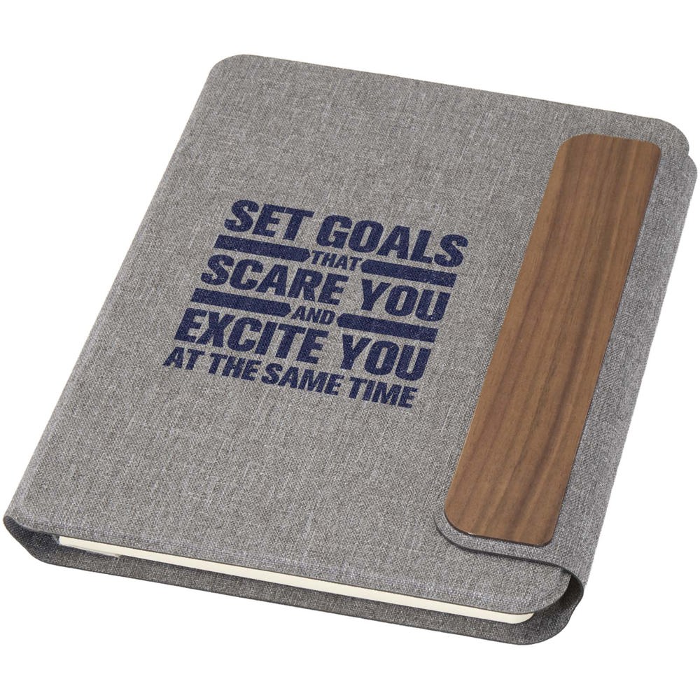 Das Andean A5-Portfolio besteht teilweise aus RCS-zertifiziertem recyceltem Polyester aus Verbraucherabfällen und bietet so eine nachhaltigere Alternative durch die Reduzierung des Bedarfs an Neumaterialien. Das Design überzeugt mit einem eleganten grauen Hardcover mit abgerundeten Ecken und präziser Schweißtechnik. Ein Magnetverschluss mit einem edlen Detail aus Walnussholz verleiht dem Portfolio eine moderne, anspruchsvolle Note. Im Inneren befindet sich ein herausnehmbares Softcover-Notizbuch mit 64 cremefarbenen, liniertem Seiten aus 80 g/m² Papier aus verantwortungsvollerer Herkunft. Verpackt in einer Papierbanderole in Kraftpapieroptik.