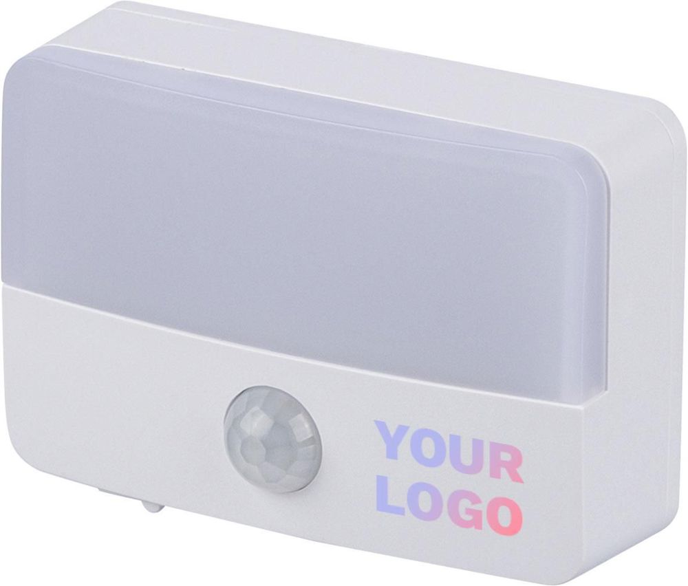 Wiederaufladbare Sensorleuchte aus recyceltem ABS und PC in rechteckiger Form. Ausgestattet mit einem 500 mAh Akku und Typ-C-Ladefunktion. Die Vorderseite verfügt über einen Bewegungssensor mit 120°-Winkel und einer Reichweite von 3–6 Metern. Der Sensor schaltet sich bei Tageslicht automatisch aus und bei Dunkelheit ein, sobald eine Bewegung erkannt wird. Die Leuchte bietet 30 Lumen Licht. Auf der Rückseite befindet sich ein Magnet mit Metallplatte und selbstklebendem Klebeband sowie ein Aufhängeloch für vielseitige Anwendung. Abgerundet wird die Leuchte durch ein aufgedrucktes Recycelt (ABS)-Logo unterhalb der Ladeöffnung. Einzeln verpackt in einem braunen Karton mit Illustration.