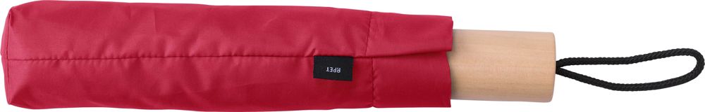 rPET 190T, foldable umbrella with eight panels and oak wood handle. Including pouch.