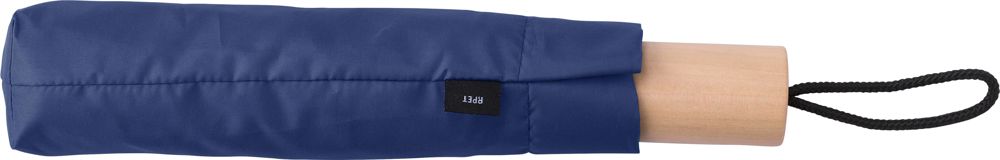 rPET 190T, foldable umbrella with eight panels and oak wood handle. Including pouch.