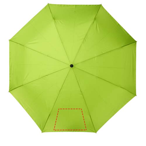 Automatic open and close folding umbrella with a recycled PET pongee polyester canopy. Sturdy metal shaft, a high quality frame with fibreglass ribs offering maximum flexibility in windy conditions. Supplied with a pouch and can easily fit a handbag or backpack for convenient carrying. Together with the wooden handle and the recycled PET pongee polyester canopy it offers a more responsible choice. Available in an wide variety of contemporary colours with a large decoration area on each of the panels.
