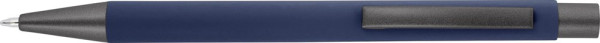 Ballpen with rubber finish. The tip, top and clip match each other with a dark grey color. Blue ink.