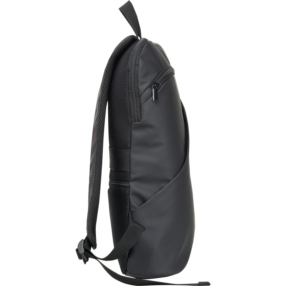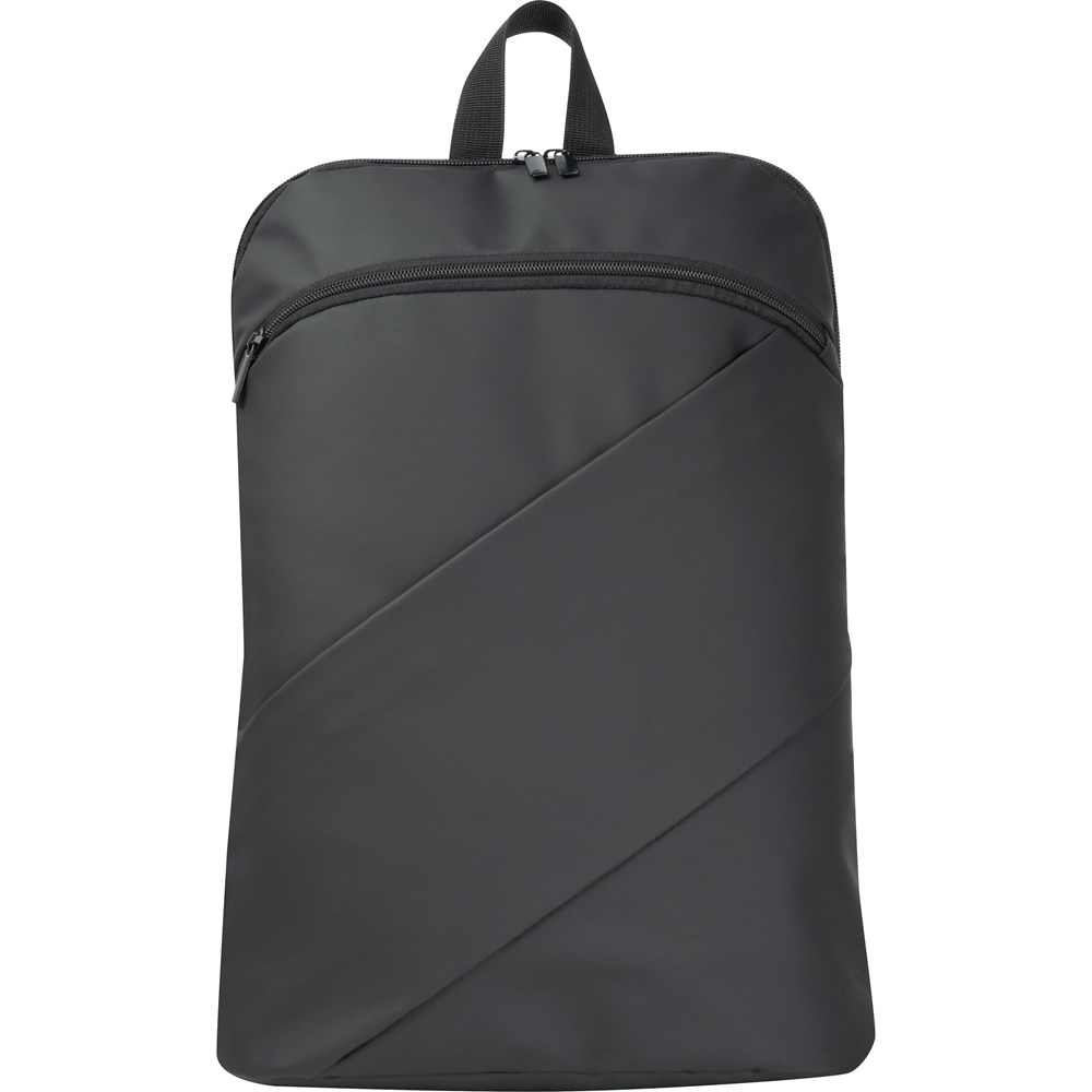 Unser Rucksack aus Kunstleder kombiniert modernes Design mit praktischen Funktionen. Das elegante Kunstleder wird durch zwei schräg verlaufende, schwarzglänzende Reißverschlüsse an der Vorderseite ergänzt, die dem Rucksack einen stilvollen Look verleihen. Mit einer Trageschlaufe, zwei bequemen Schultergurten und einem integrierten Anti-Diebstahl-Fach bietet er vielseitige Einsatzmöglichkeiten und Sicherheit für Ihre persönlichen Gegenstände. Ihre Werbung wird gut sichtbar auf die Vorderseite gedruckt und macht den Rucksack zu einem effektiven Werbeträger.