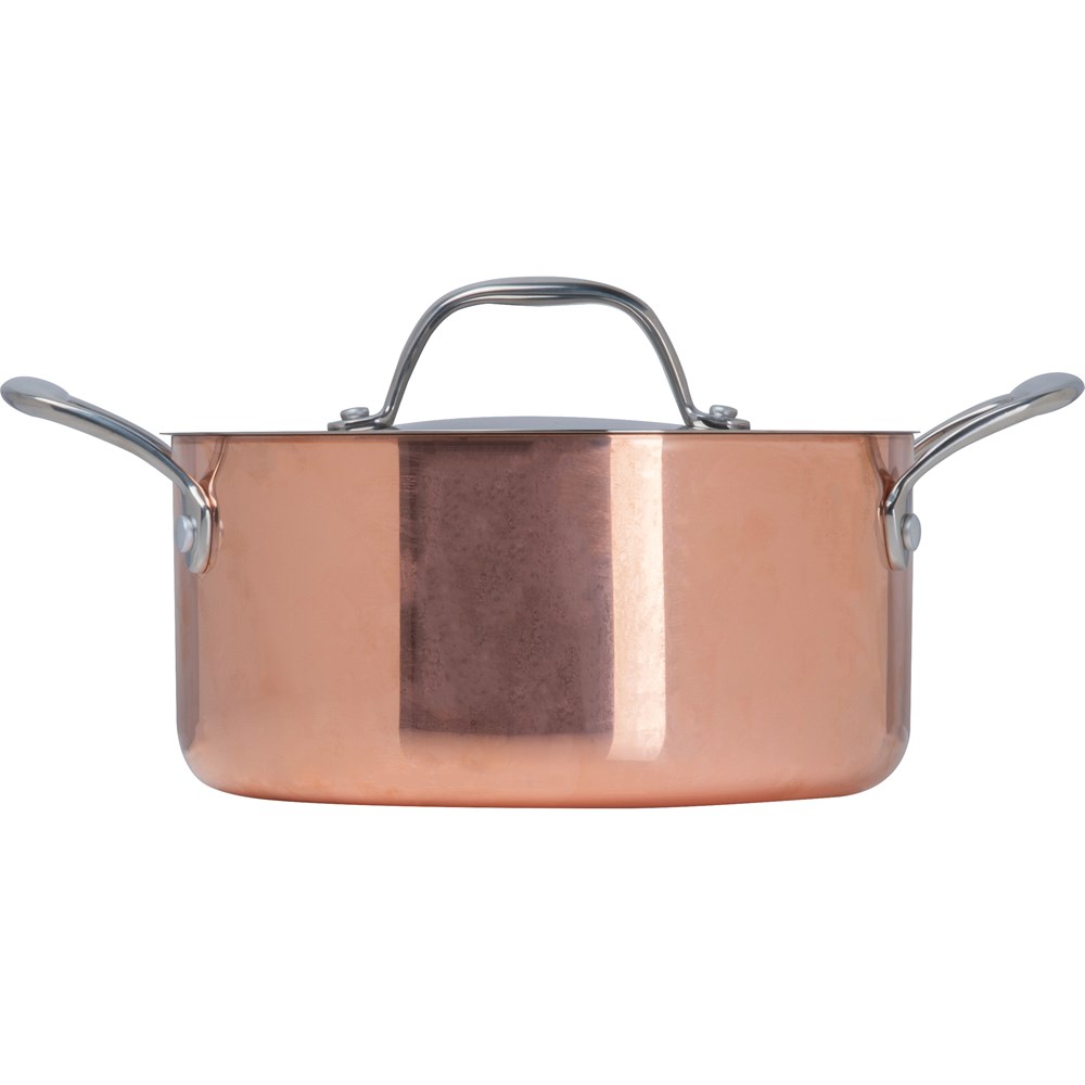 Unser CrisMa Kochtopf aus rostfreiem Edelstahl mit Kupferbeschichtung vereint hochwertiges Material und exzellente Funktionalität. Die Kupferbeschichtung sorgt für eine herausragende Wärmeleit- und Speicherfähigkeit, die energieeffizientes Kochen ermöglicht. Der Topf ist mit zwei Henkeln ausgestattet und dank seiner Vielseitigkeit für Elektro-, Gas- und Induktionsherde geeignet. Der passende Deckel vervollständigt das elegante Design. Ihre Werbung wird präzise auf den Deckel graviert und macht den Kochtopf zu einem edlen und praktischen Werbeartikel.