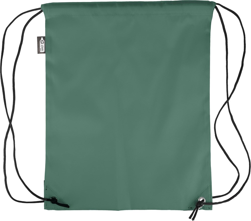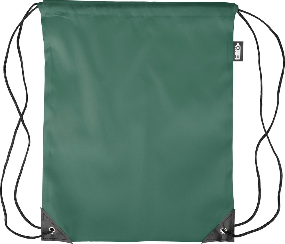 rPET polyester 210D drawstring backpack with two black PU corners on the front and internal...