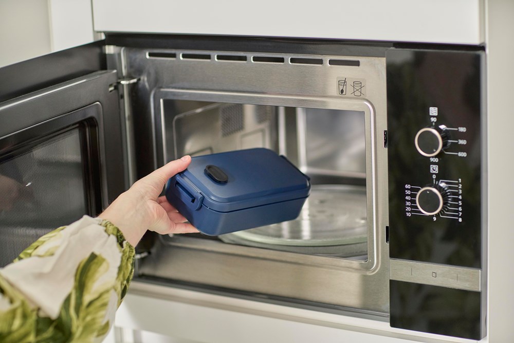 PP lunchbox with an 800 ml capacity. Features a silicone valve suitable for microwave use and a...