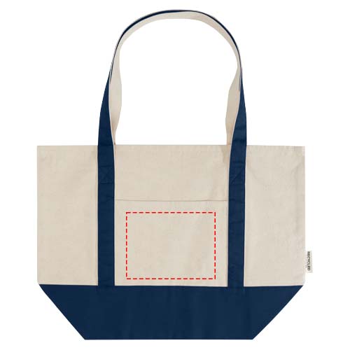 The Sam tote bag made from 100% GRS certified recycled cotton is the perfect bag for a picnic or doing some grocery shopping. The cotton density of 320 g/m² cotton makes the bag sturdy, long-lasting and the double handles make it suitable to carry heavy items in the main compartment. The print methods available for this tote bag are also GRS certified, making sure that the entire supply chain is transparent and certified. Handle dropdown length: 30 cm. Resistance up to 10 kg weight. Volume capacity: 15 litres. Made in India.