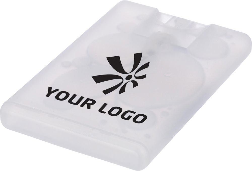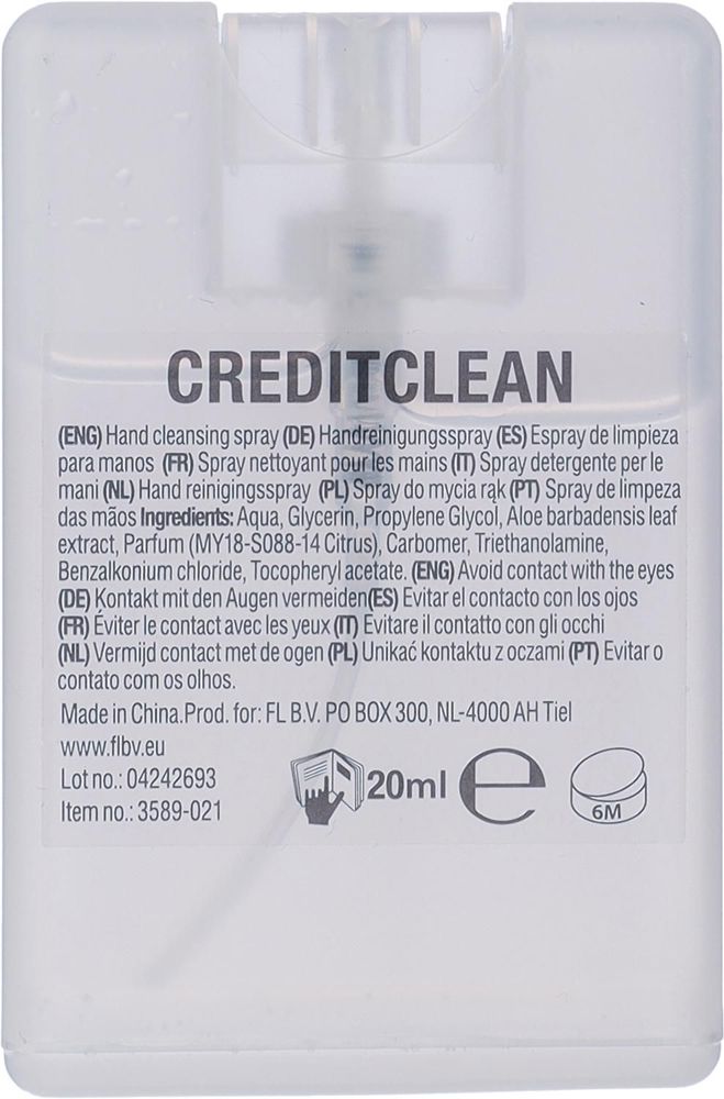 PET credit card shaped case with hand spray (20 ml), ethanol free.