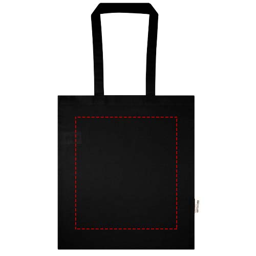 The Madras Blend tote bag made from 60% GRS certified recycled cotton and 40% GRS RPET is the perfect bag to give away during any event, conference or to use as a shopping bag for small groceries. The cotton density of 140 g/m² cotton makes the bag sturdy, long-lasting and suitable to carry heavy items in the main compartment. With the 30 cm long shoulder handles this tote bag is easy to carry around. The print methods available for this tote bag are also GRS certified, making sure that the entire supply chain is transparent and certified. Made in India. Resistance up to 5kg weight. Volume capacity: 7 litres.