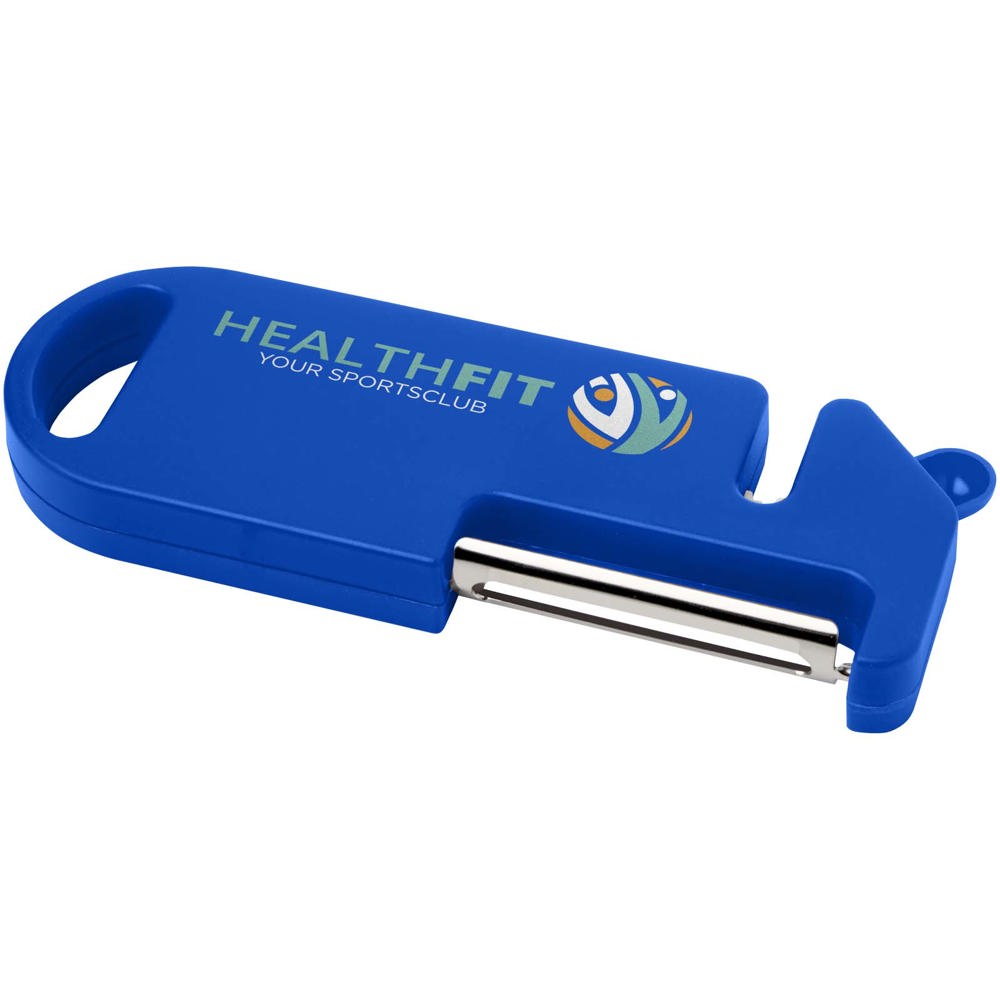 This multi-purpose kitchen tool combines four essential functions in one compact design. Made from recycled plastic, it features a peeler, bottle opener, knife sharpener, and a pointed tip for removing potato blemishes. A built-in hanging hole allows for easy storage. Practical and space-saving, it’s a versatile must-have for every home cook.