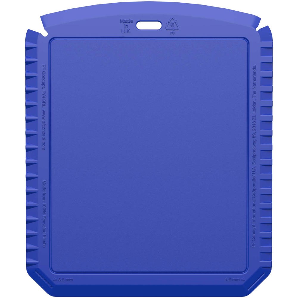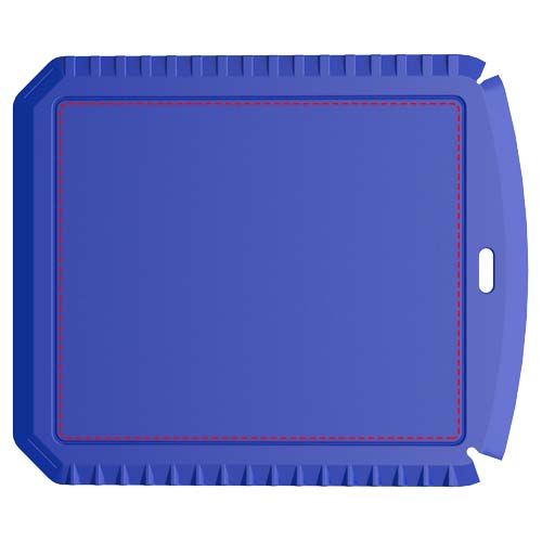 Compact and convenient, the Thrym rectangular recycled plastic ice scraper is the perfect tool for use in icy conditions. Made from 100% recycled plastic, its durable construction ensures effective removal of ice and frost. Features a flat edge, a serrated edge, and a windscreen wiper blade cleaner.