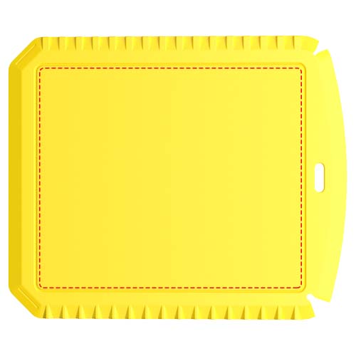 Compact and convenient, the Thrym rectangular recycled plastic ice scraper is the perfect tool for use in icy conditions. Made from 100% recycled plastic, its durable construction ensures effective removal of ice and frost. Features a flat edge, a serrated edge, and a windscreen wiper blade cleaner.
