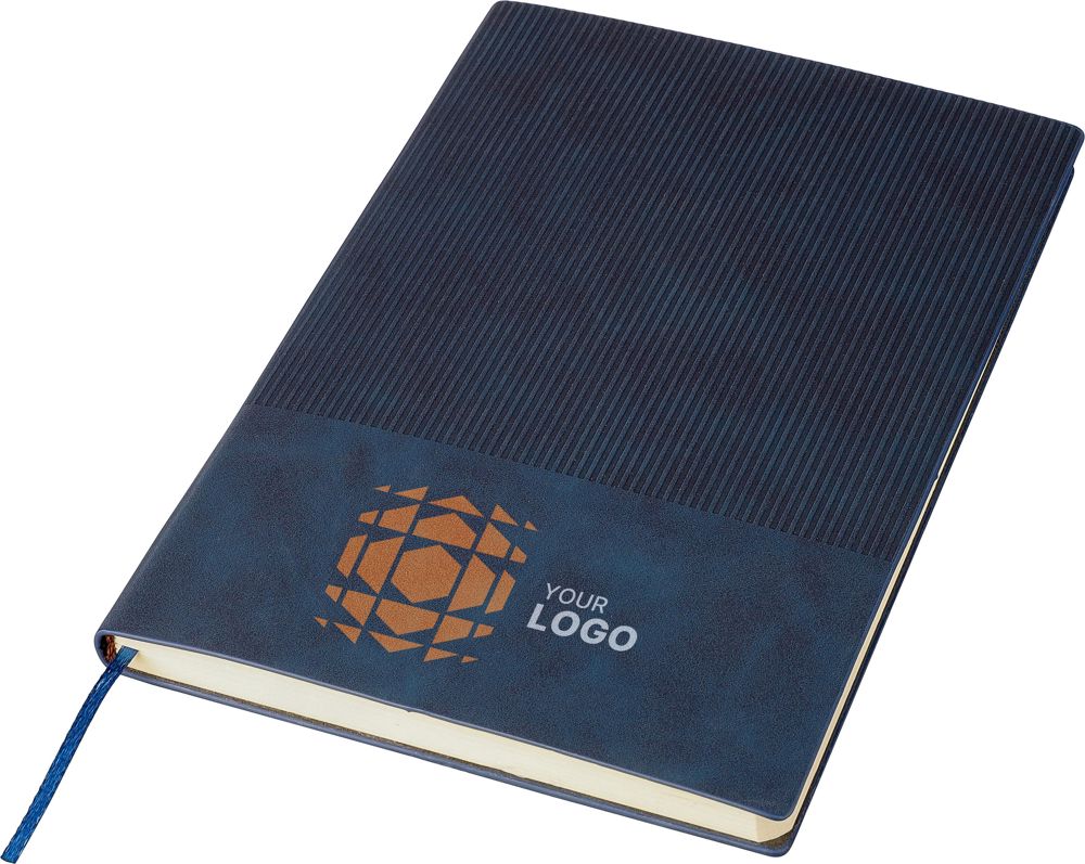 Recycled PU notebook (approx. A5) with a hard cover and corduroy-look finish on the top part of the front and back. Includes a ribbon bookmark and 100 lined pages (80 gsm). Features an embossed recycled logo on the back.