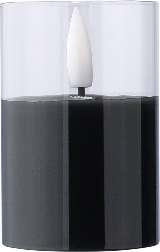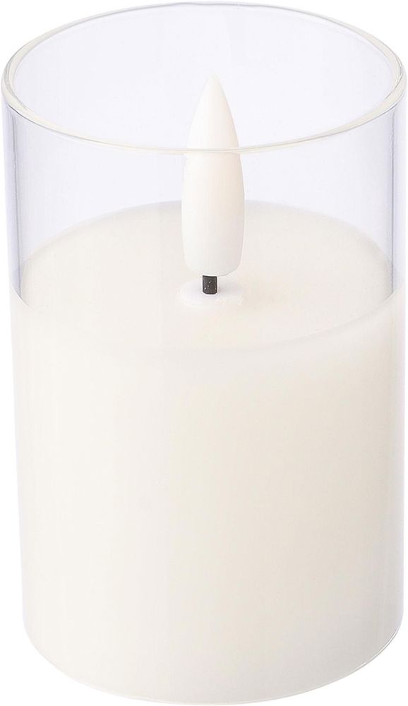 PP LED wax candle in glass holder with realistic flame effect. Includes battery and offers... more