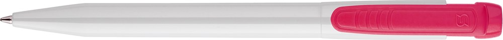 Stilolinea plastic ballpen with a white barrel, coloured wide clip, and jumbo refill. Blue ink....