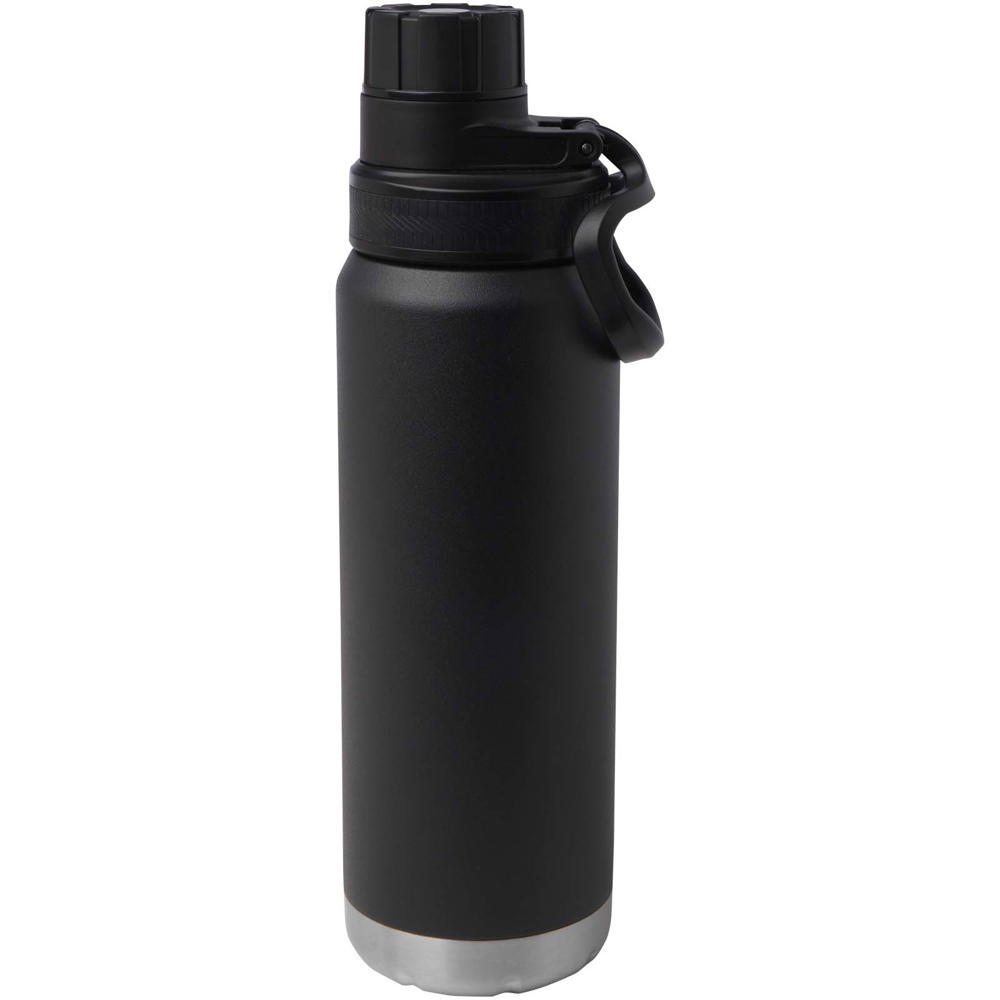 RCS certified stainless steel double-walled copper vacuum insulated water bottle with a screw-on, leak-proof lid. Keeps drinks cold for 48 hours or hot for 12 hours. Featuring a wide opening for easy filling and cleaning, and a convenient carrying handle that is integrated with the cap. Suitable for carbonated drinks. Durable power coating on the outside. Delivered in a recycled cardboard gift box. Volume capacity: 700 ml.