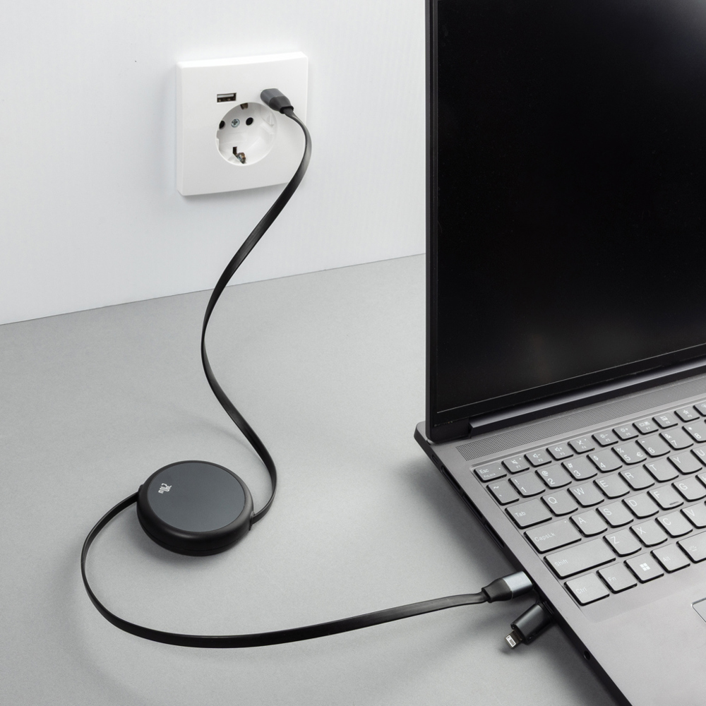Terra RCS recycled aluminium retractable 240W 2-in-1 cable
