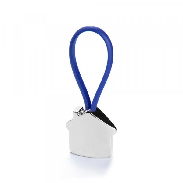Metal keychain in fun 3D home design. With rubber band in a varied and bright tones.