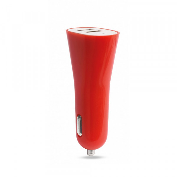 USB charger for car lighter. 2,100 mA charging capacity in bold bicolor design. With dual USB output which allows simultaneous charging of two mobile devices. Translucent cover with LED indicator and presented in an individual box.