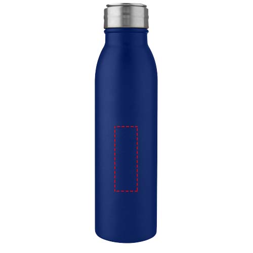 Single-walled 18/8 stainless steel water bottle with a screw-on, spill-resistant lid and a durable, zinc-alloy hand loop. BPA-free, tested and approved under German Food Safe Legislation (LFGB). Tested and approved for phthalates content according to REACH regulations. Fits most standard car cup holders. Volume capacity is 700 ml. Hand wash recommended. Presented in a recycled cardboard gift box.