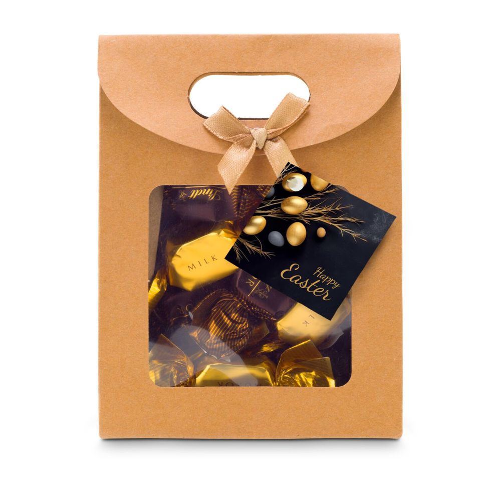 Eight exquisite Lindt Nuxor chocolates (approx. 103 g in total) await their grand entrance in a natural-coloured gift bag with a bow and a generous viewing window. Four delicately tart cubes with dark gianduja and whole hazelnuts ignite an intense interplay of flavours, while the four whole milk confectionery masterpieces combine creamy, delicate nougat with a crunchy centre. The luxurious duo of delicately tart and whole milk promises first-class moments of enjoyment at Easter that will delight customers, employees and business partners alike. The discreet, natural packaging stylishly showcases these little delicacies and offers a tempting glimpse of the contents - an elegant gift that conveys appreciation at first glance and will be remembered for a long time to come. Perfect for Easter with an elegant Easter egg tag that says ‘Frohe Ostern’ on one side and ‘Happy Easter’ on the other.