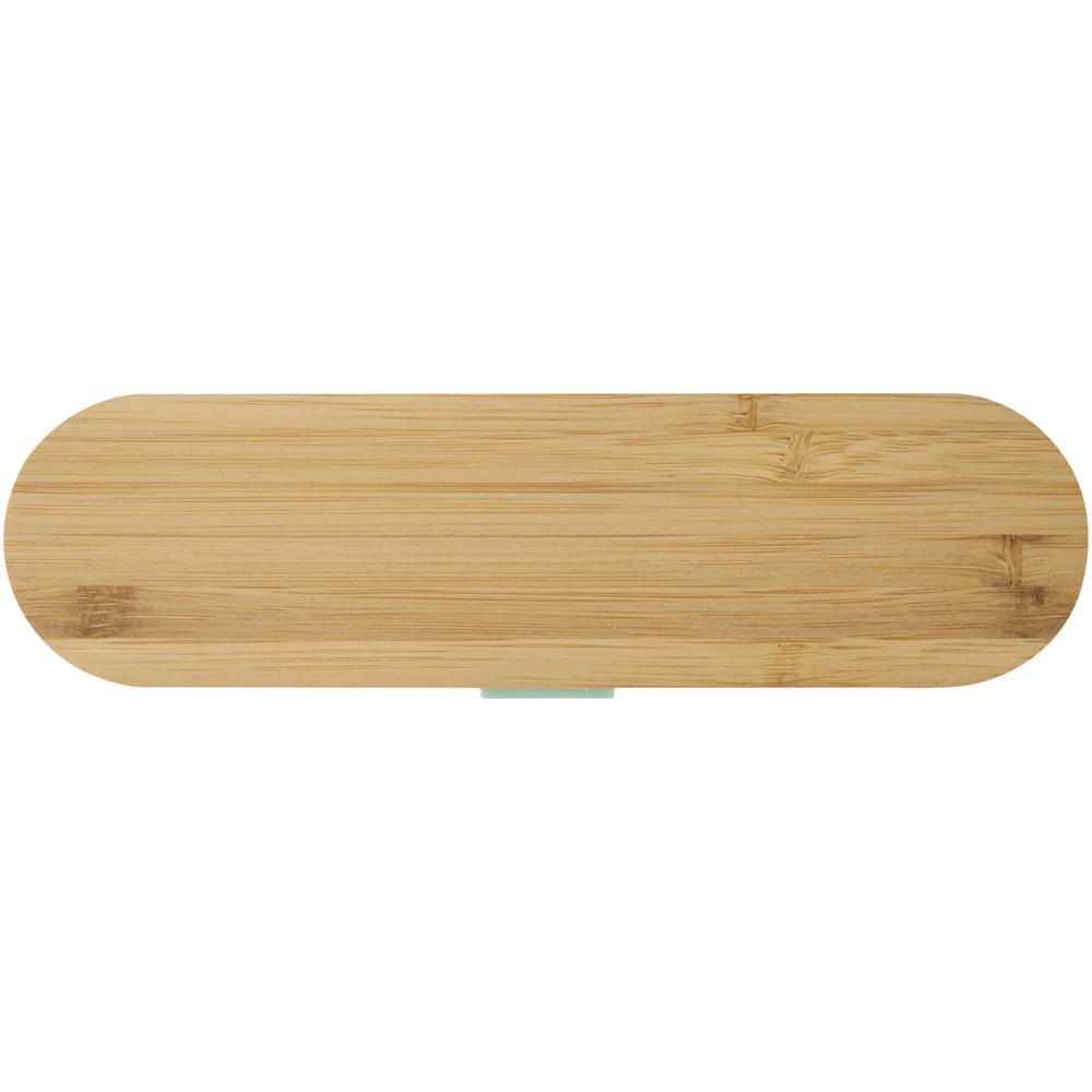 A reusable cutlery set including a fork, knife, spoon, straw, and straw cleaner – ideal for meals on the go. Compact and easy to clean, it’s perfect for lunch boxes, travel, or office use. Delivered in a plastic storage box with a bamboo lid.