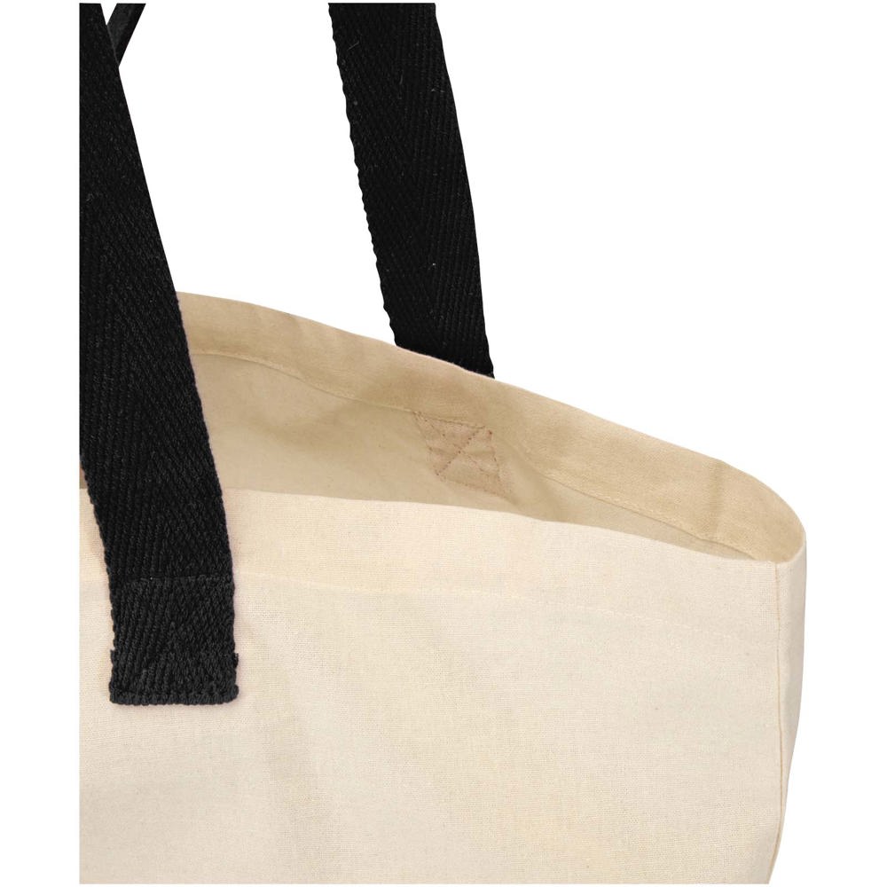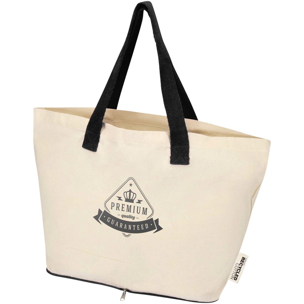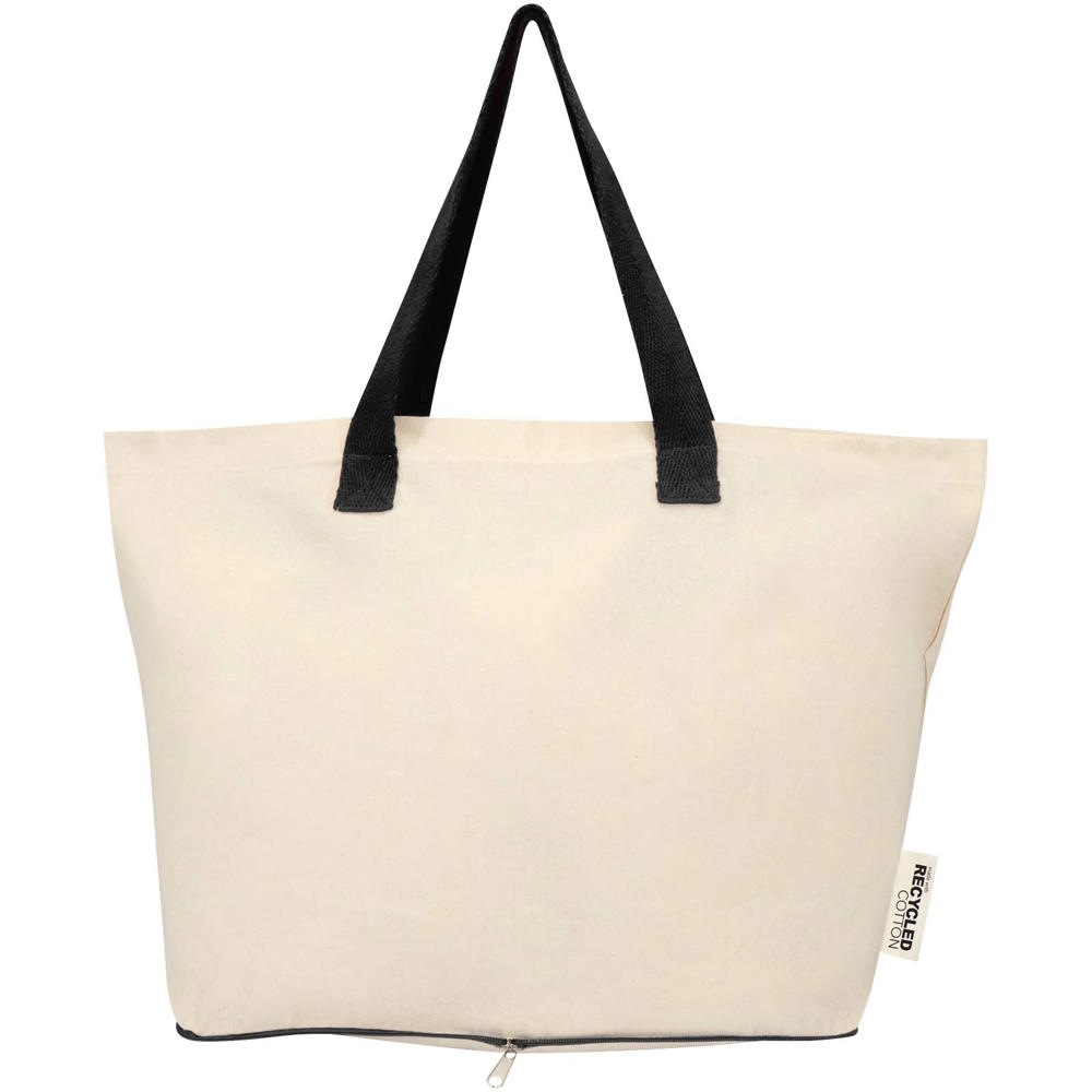 Lightweight and practical, the Sierra foldable tote bag is made from 100% GRS certified recycled cotton with a fabric density of 140 g/m², offering a balance of flexibility and durability. It folds neatly into its own zippered pouch at the bottom, making it compact and easy to carry on the go. Ideal for shopping, errands, or travel, the bag holds up to 10 kg and features double handles for added support and comfort when carrying heavier loads. Volume capacity: 7 litres.