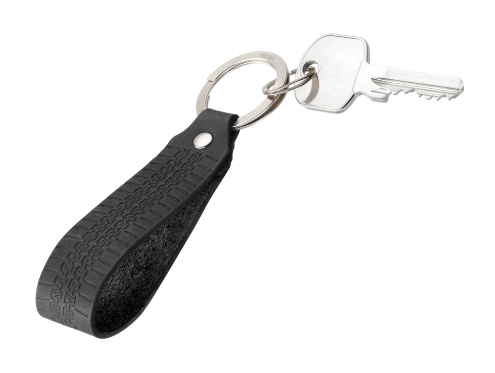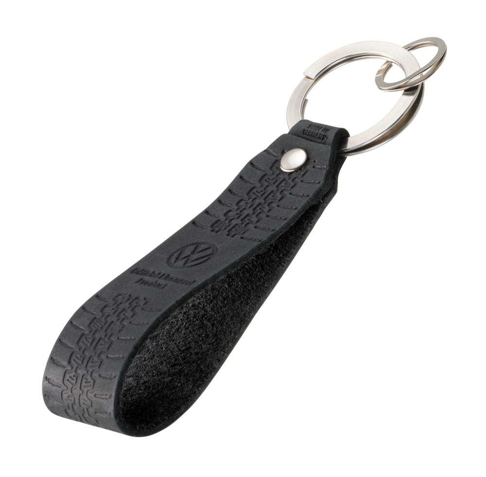 Keyring leather loop, motif: VW Golf tyre tread 1974, quick & easy attachment of keys thanks to patented opening mechanism (TROIKA NAIL GUARD), leather (Made in Germany), black