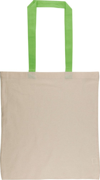 Cotton (140 gsm) shopping bag in natural color with colored handles. Size 38 × 42 cm with 70 cm...