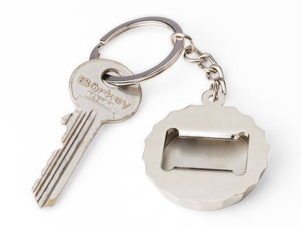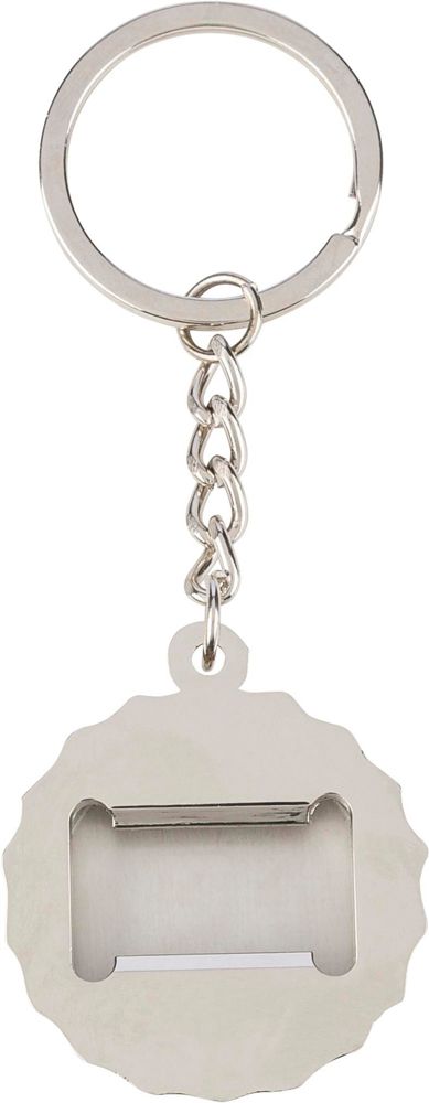 Zinc alloy keychain with bamboo inlay on the front and integrated bottle opener on the back.... more