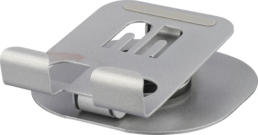 Aluminium alloy phone stand with 360-degree rotation function. Can be fully folded flat for easy storage. Sturdy and weighty design for stable support. Individually packaged in a white box.