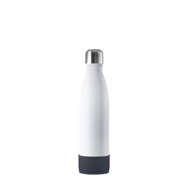 Perfect for hot or cold drinks, our double-walled stainless steel bottle impresses with its trendy and functional design. Its double-walled design with vacuum ensures that drinks stay hot or cold for longer. The drinking bottle can be ordered in an elegant black or white matte powder finish or, of course, in sleek silver. Available with a 500 ml capacity. Display your logo in style on this on-trend, premium-quality drinks bottle.
