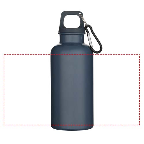 Staying hydrated at all times is possible with this durable yet lightweight 400 ml water bottle made from RCS certified recycled PET. It is the perfect companion while exercising, on day trips or at the office. The single-walled Oregon bottle has a twist-on lid and offers plenty of space to add any kind of logo. Clip the attached carabiner (not suitable for climbing) securely to a bag to avoid losing it. Manufactured in compliance with the EFSA approved PET recycling process.