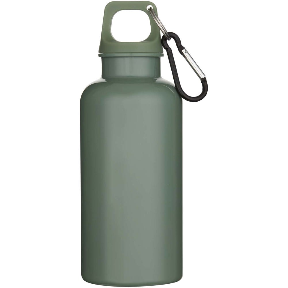 Staying hydrated at all times is possible with this durable yet lightweight 400 ml water bottle made from RCS certified recycled PET. It is the perfect companion while exercising, on day trips or at the office. The single-walled Oregon bottle has a twist-on lid and offers plenty of space to add any kind of logo. Clip the attached carabiner (not suitable for climbing) securely to a bag to avoid losing it. Manufactured in compliance with the EFSA approved PET recycling process.