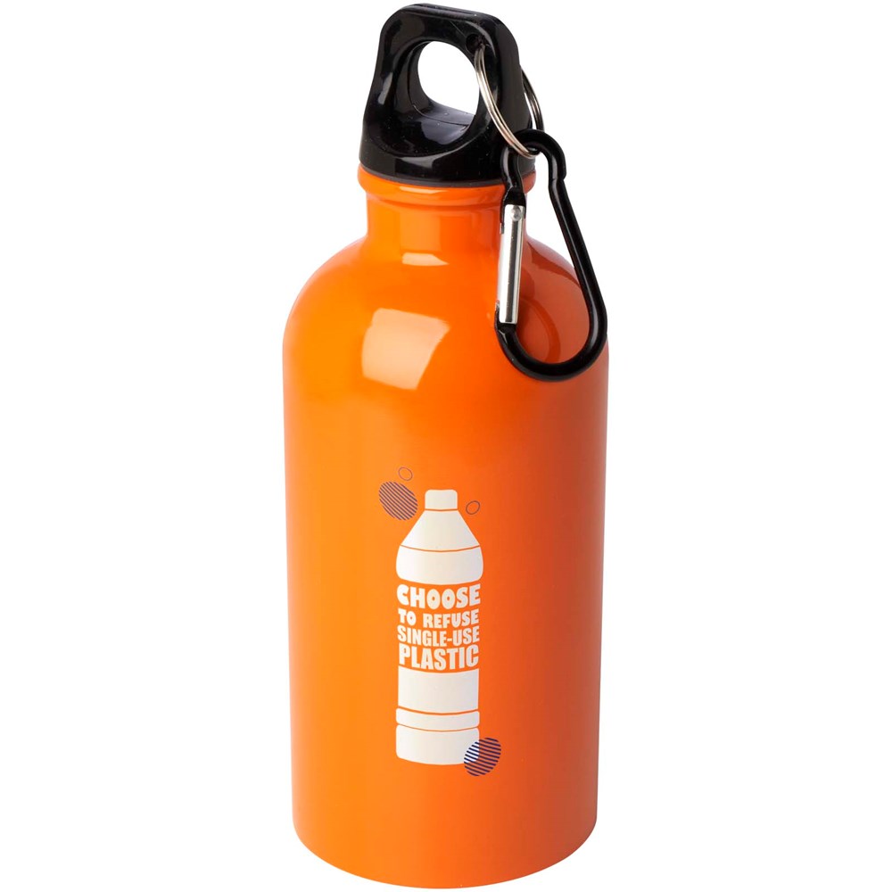 Always stay hydrated with this durable yet lightweight 400 ml water bottle made from RCS certified recycled stainless steel. It’s the perfect companion for sports, day trips or for use at the office. The single-walled Oregon bottle has a twist-off cap and offers plenty of space to add any kind of logo. Clip the attached carabiner (not suitable for climbing) securely to a bag to keep it from getting lost.