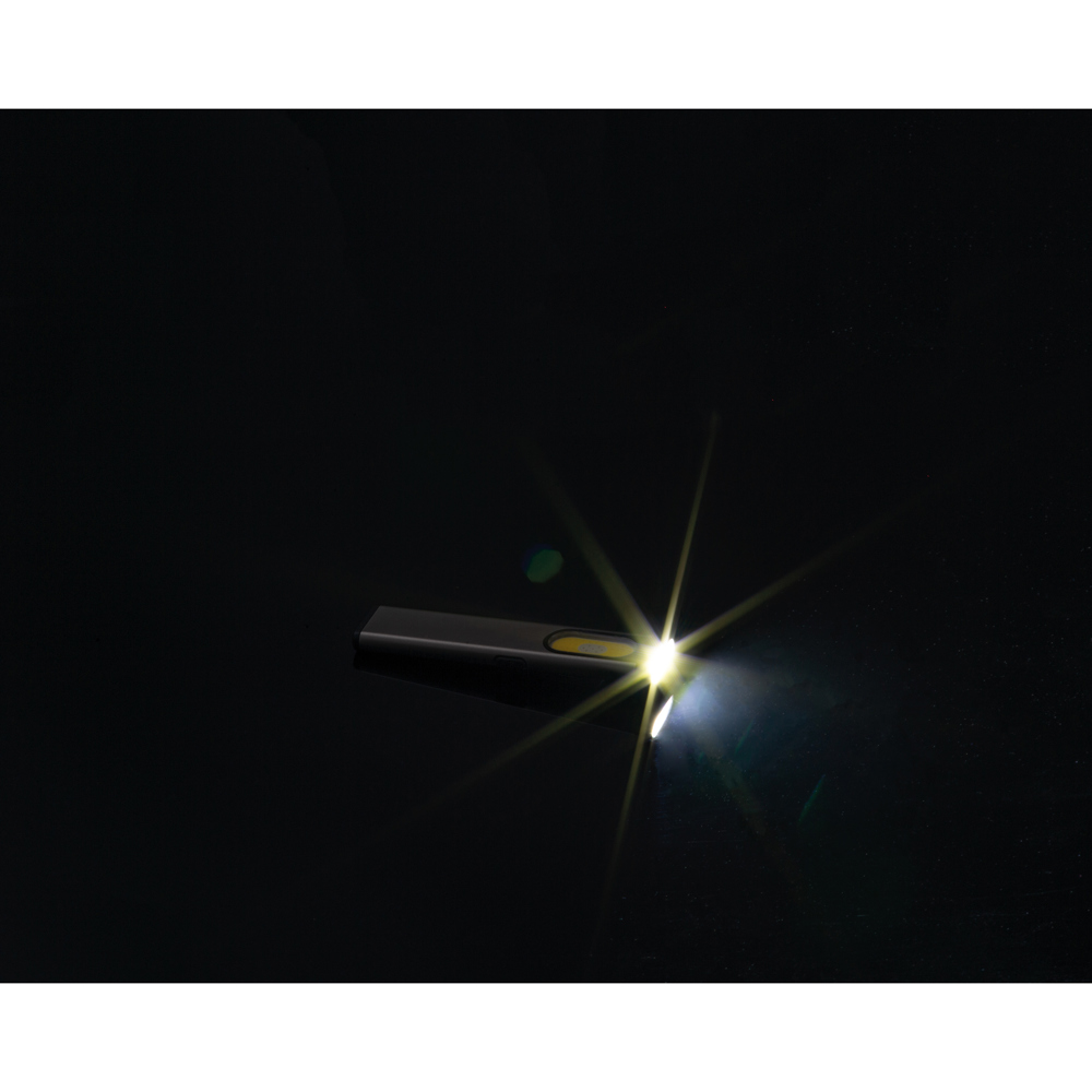 Unsere wiederaufladbare Akku-Taschenlampe aus recyceltem Aluminium überzeugt durch kompakte Bauweise, vielseitige Lichtfunktionen und nachhaltige Materialien. Mit einem leistungsstarken 450-mAh-Akku bietet sie zuverlässige Beleuchtung für Alltag, Outdoor, Werkstatt oder unterwegs. Die Kombination aus seitlicher Leuchte mit 160 Lumen und vorderer Leuchte mit 80 Lumen sorgt für maximale Flexibilität in unterschiedlichen Einsatzsituationen.