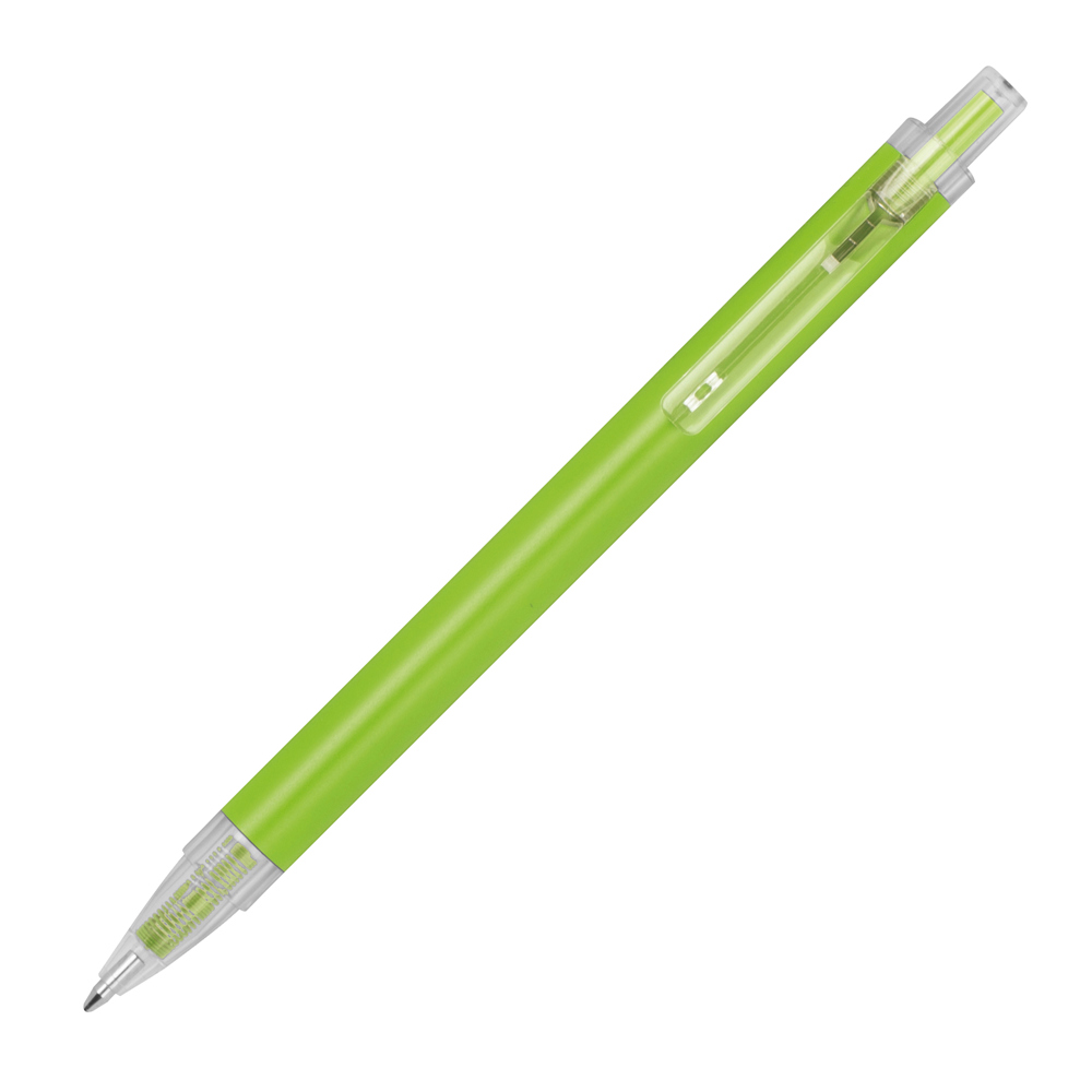 Unser Kugelschreiber aus recyceltem Aluminium und recyceltem Kunststoff (RPET) kombiniert nachhaltige Materialien mit einem modernen, leichten Design. Der transparente Clip setzt einen optischen Akzent, während die blau schreibende Großraummine für ein gleichmäßiges Schriftbild und eine lange Schreibleistung sorgt. Ideal für Büro, Schule oder den täglichen Gebrauch.