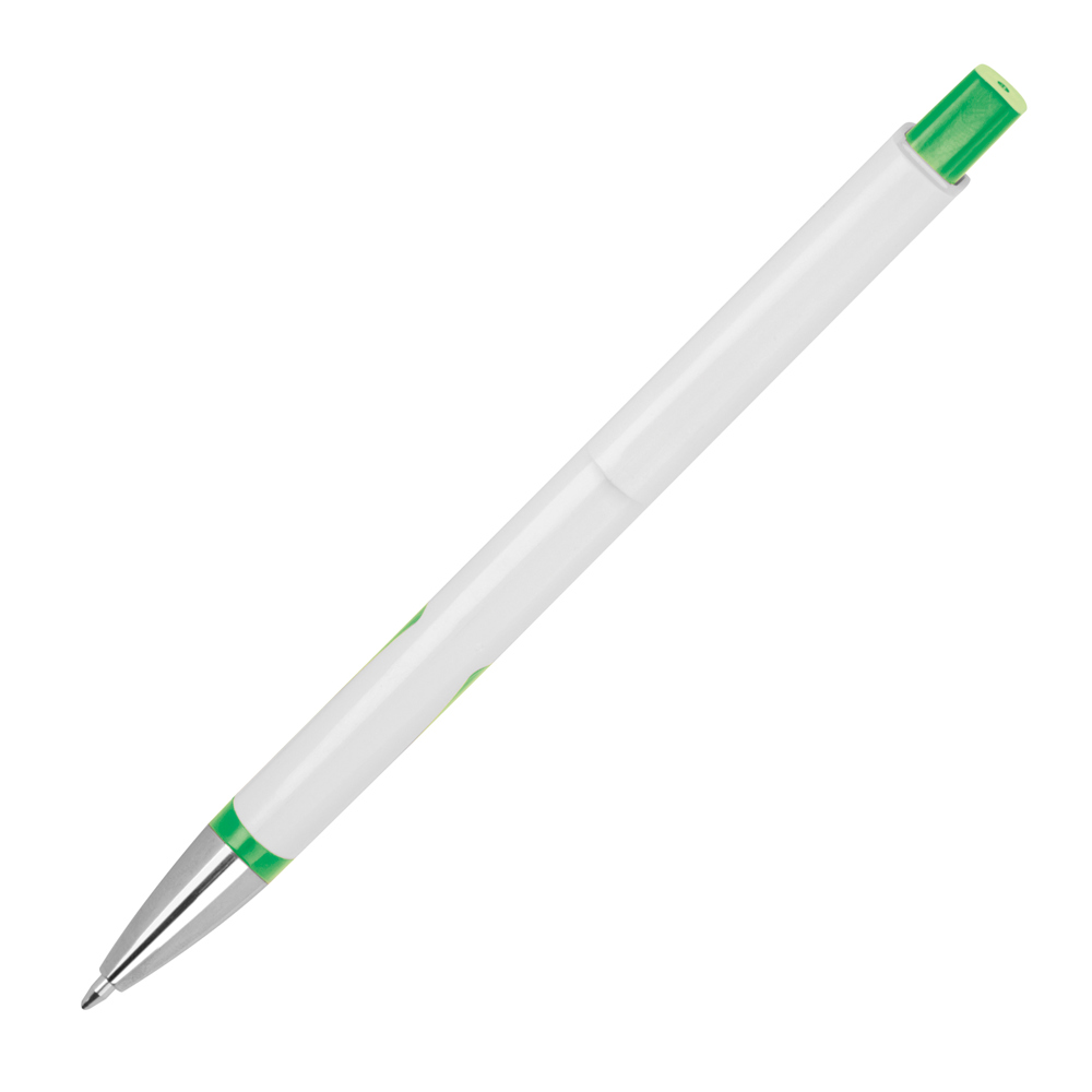 Unser weißer Kugelschreiber aus recyceltem Kunststoff (RABS) überzeugt durch schlichtes Design, nachhaltige Materialien und zuverlässige Schreibqualität. Die blau schreibende Großraummine sorgt für ein gleichmäßiges Schriftbild und eine lange Schreibleistung – ideal für Büro, Schule oder den täglichen Einsatz.