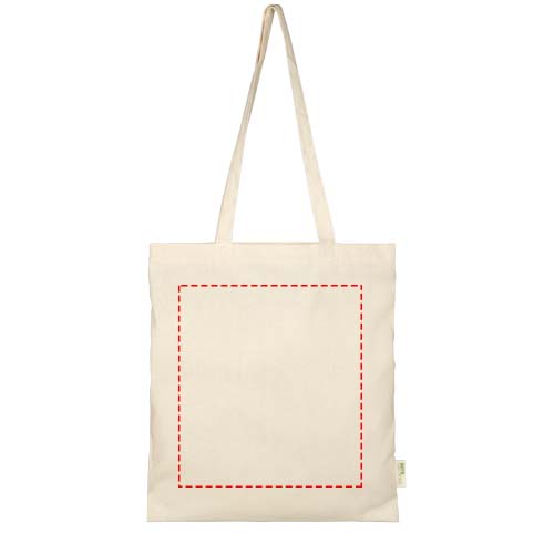 Tote bag with a large open main compartment, providing plenty of space to carry around all the essentials. The 32 cm long handles makes it comfortable and easy to carry around with you wherever you go. This tote bag is made in India with 140 g/m² organic cotton and is OEKO-Tex certified. Resistance up to 5 kg weight