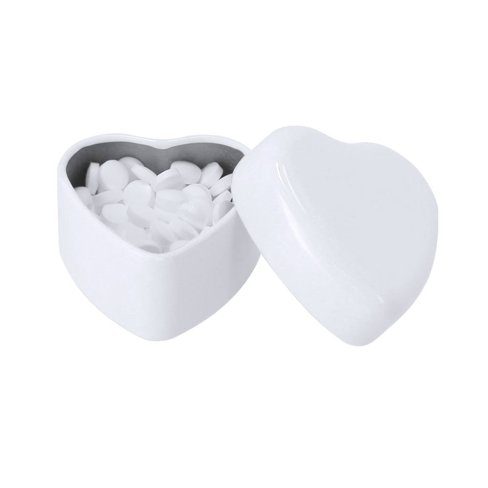 20 gr sugar-free mint candy dispenser. In a metal box with an original heart shape.